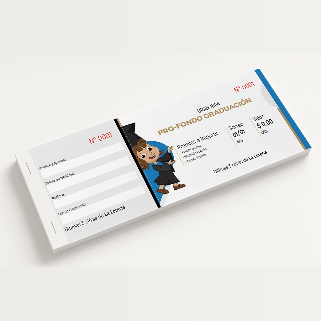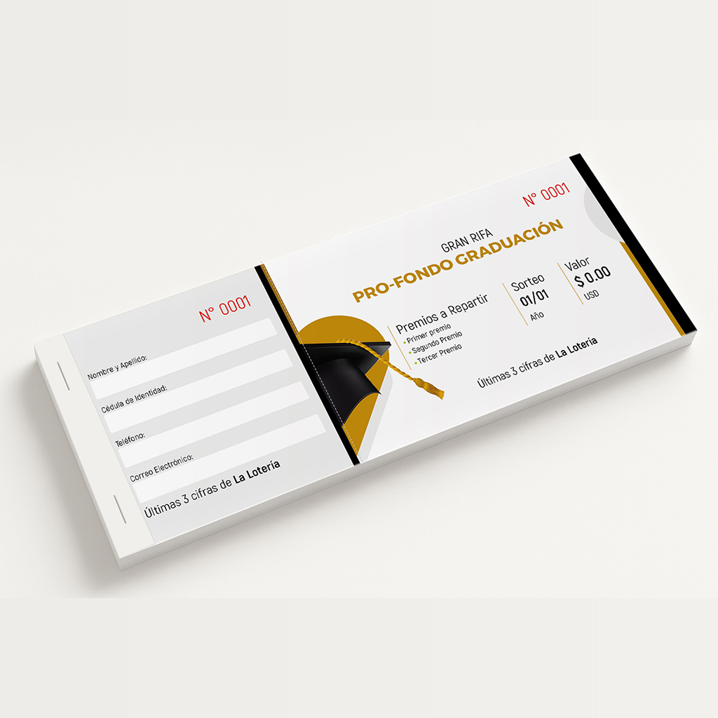 Con nuestras rifas personalizadas, obtienes un producto funcional, elegante y atractivo, ideal para captar la atención del público y darle valor a tu evento. Ya sea una graduación, un sorteo benéfico, un torneo deportivo o una promoción comercial, nuestras rifas impresas comunican confianza y calidad.